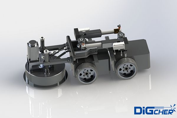 機器人采用四輪驅(qū)動,負載能力強,可在在垂直面及天花板面任意行走;電機驅(qū)動,具有穩(wěn)定可靠的立面吸附措施;機器人前端的毛刷盤負責清理和回收模板表面的粉塵和殘渣。